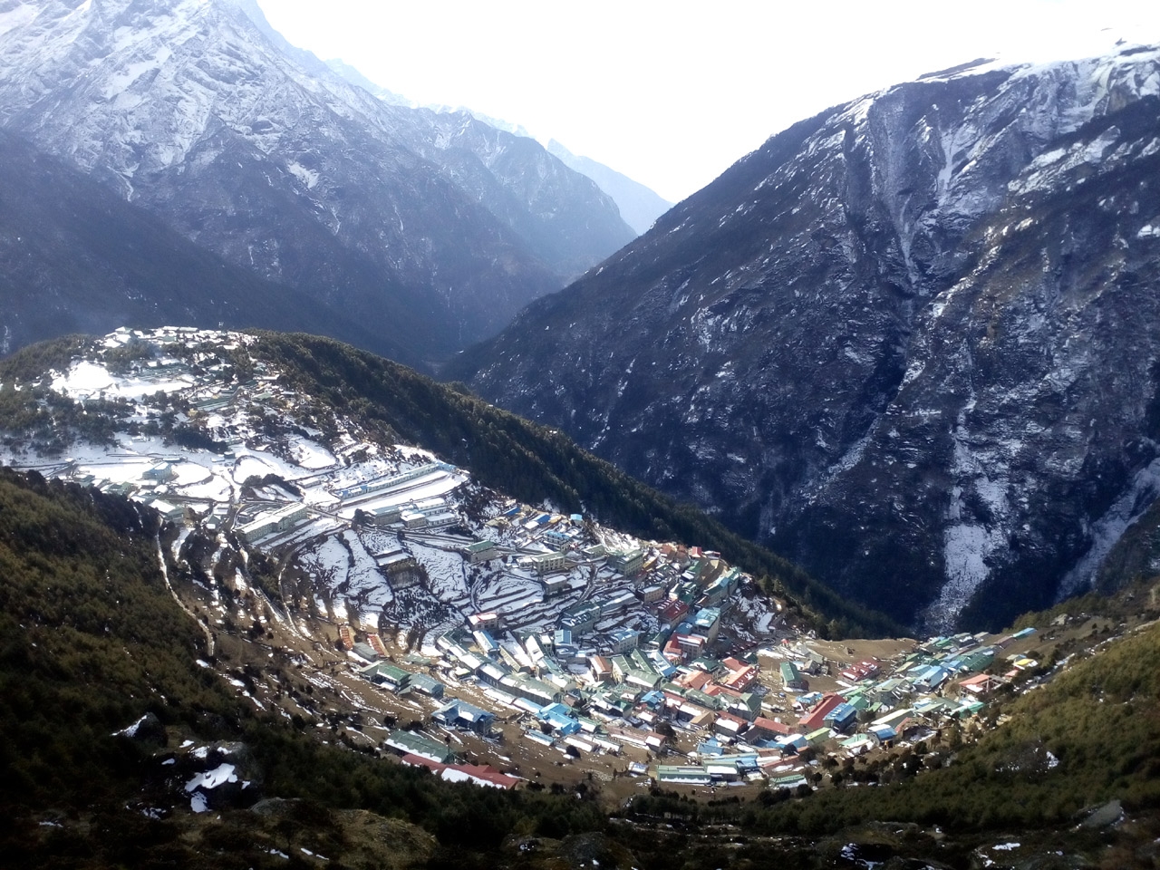 Trek from Phakding to Namche Bazaar (3440m.) which will take approximately five hours. Namche Bazaar (3440m) is a beautiful Himalayan village located on the lap of mountain and at the bank of pristine Bhote Koshi River.