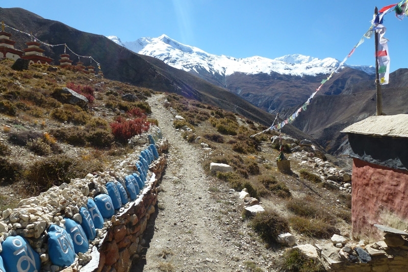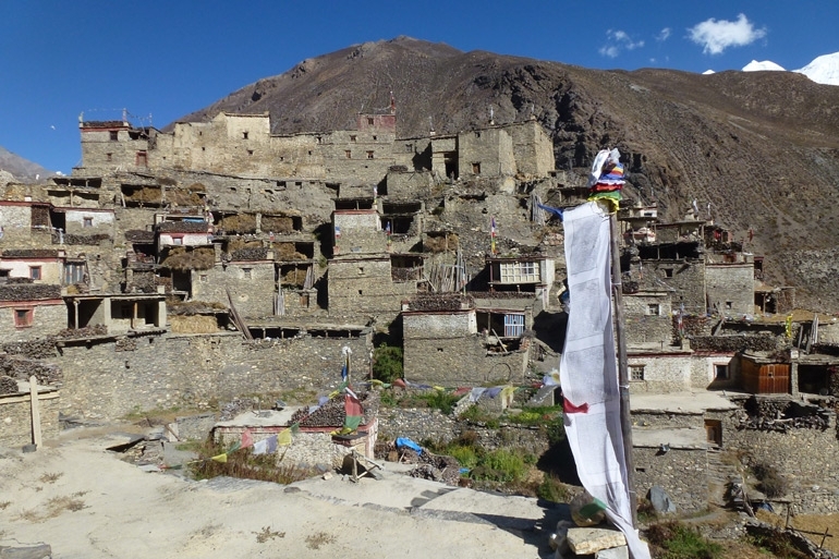 Ngawal, on the upper Pisang route of the Annapurna circuit (off the main Annapurna circuit), can be reached in as little as two hours from the pass, but the walk down is so nice that you will take it easy and enjoy the views. Just before Ngawal is an unusual grouping of Chortens and prayer flags, and marks a meditation cave far up in the hills. Ngawal is a wonderful, old village of cobbled streets, prayer wheels and beautiful architecture, obviously a hub of religious activity in previous times.