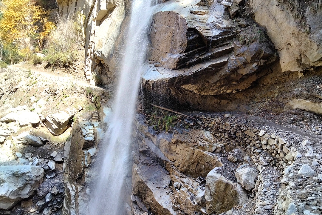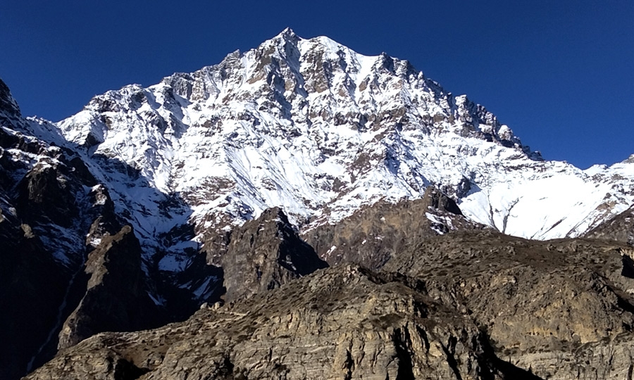 Trek from Koto to Dharmashala takes about six hours. You cross the river leading to the Nar Phu valleys and hike up through beautiful woods above the Phu Khola. The route takes you through some beautiful woods and past several small caves, and a pilgrims’ Dharmashala. After you emerge out of a narrow canyon, the trail actually passes under a wide waterfall just before the Dharmashala, from where the woods become thinner and the vistas wider.